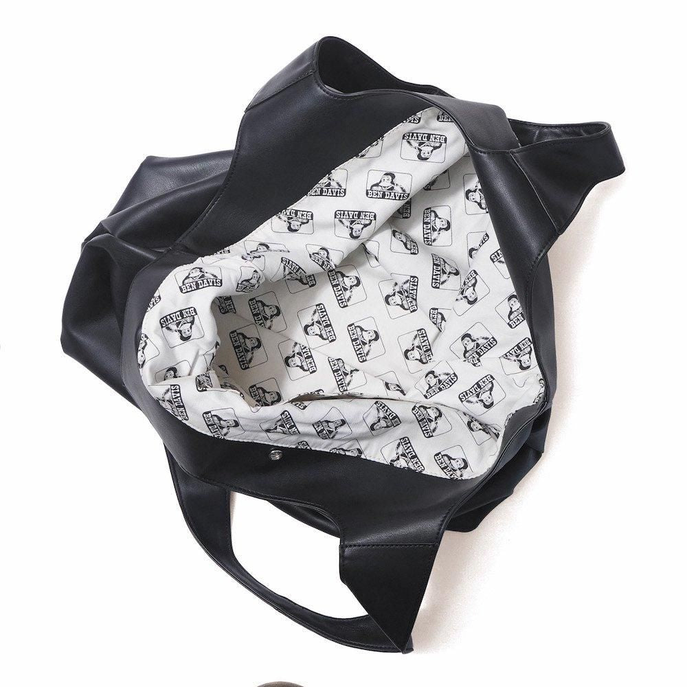 滑らかな手触りの合皮素材を用いた大きめのトートバックです。