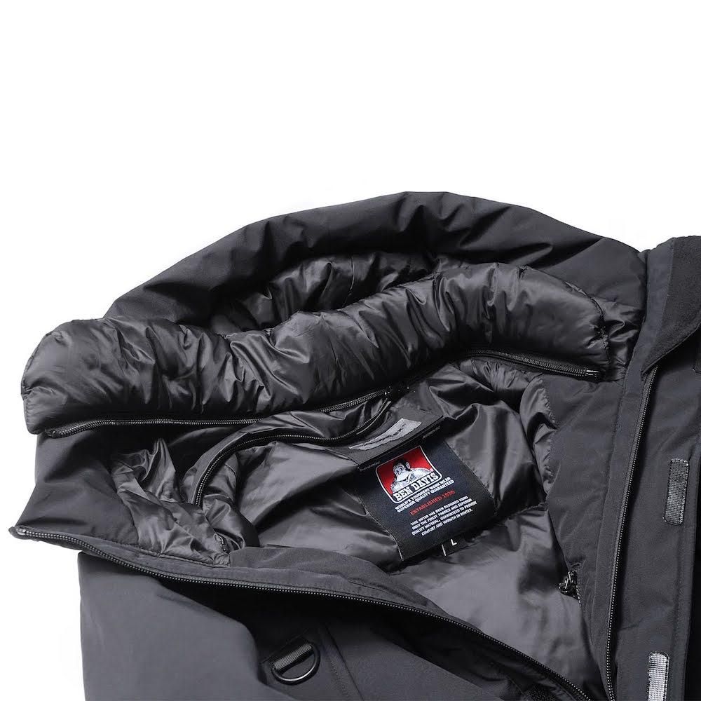 ネックウォーマーとして機能する首元は、敢えて中綿素材を使用しております。 ジップで取り外しができ、洗濯が可能です。