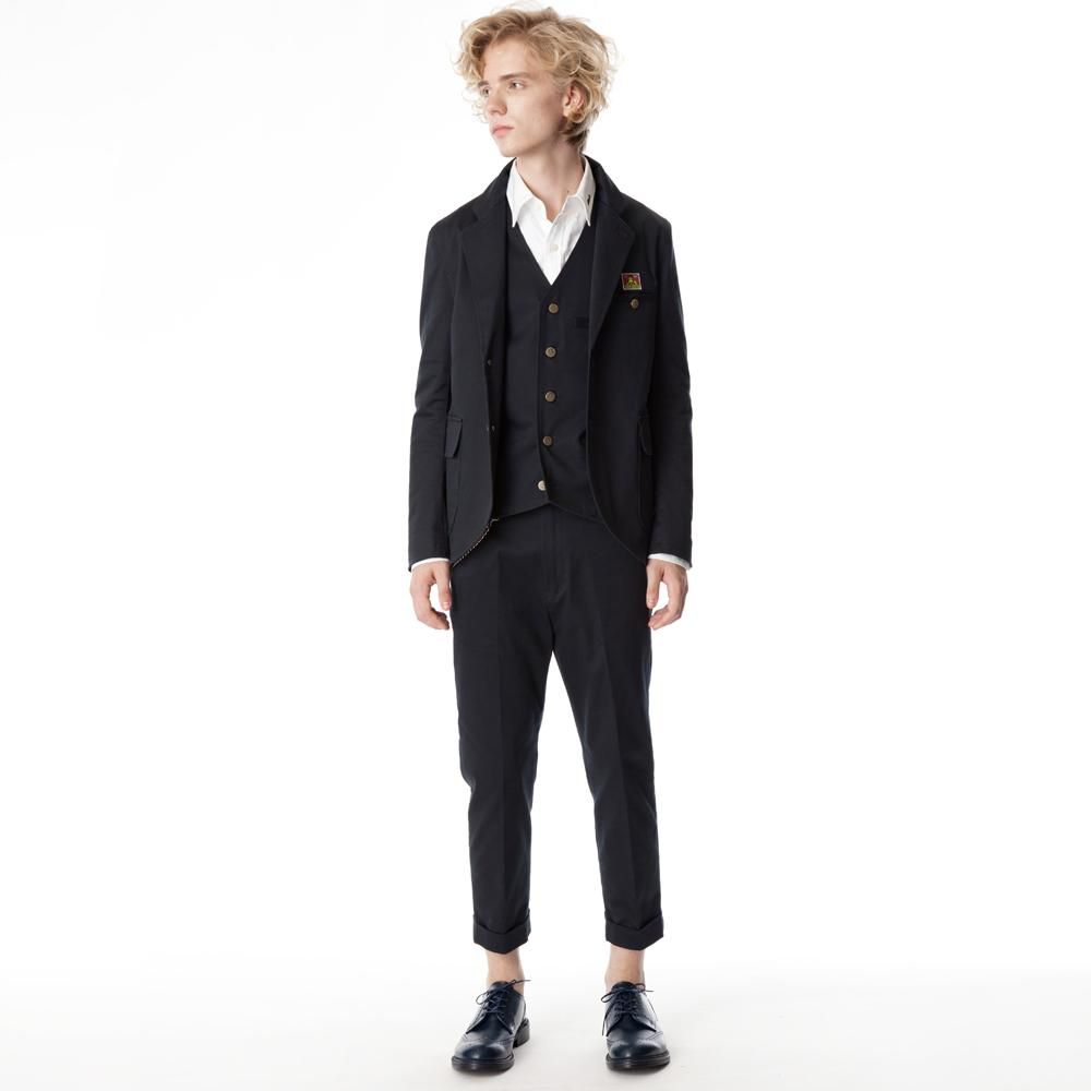 同色のJACKET・VESTを合わせた3ピースのシルエットもおすすめです。