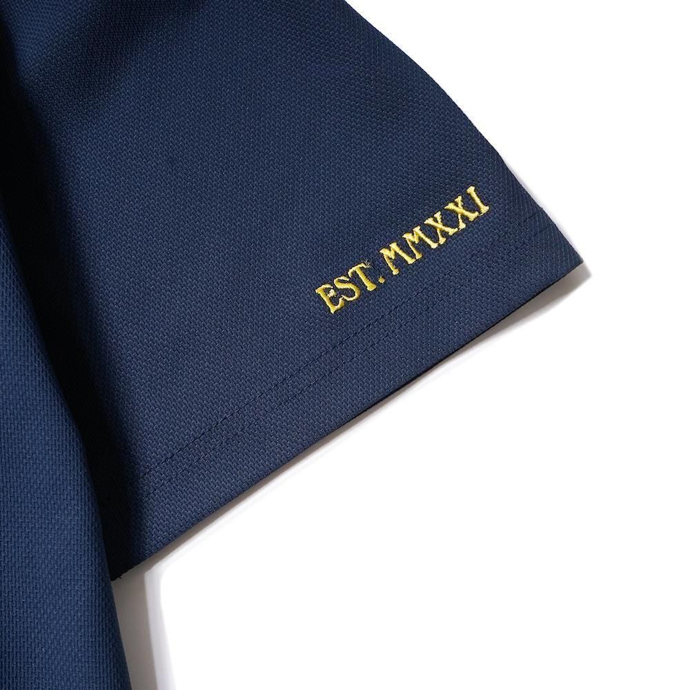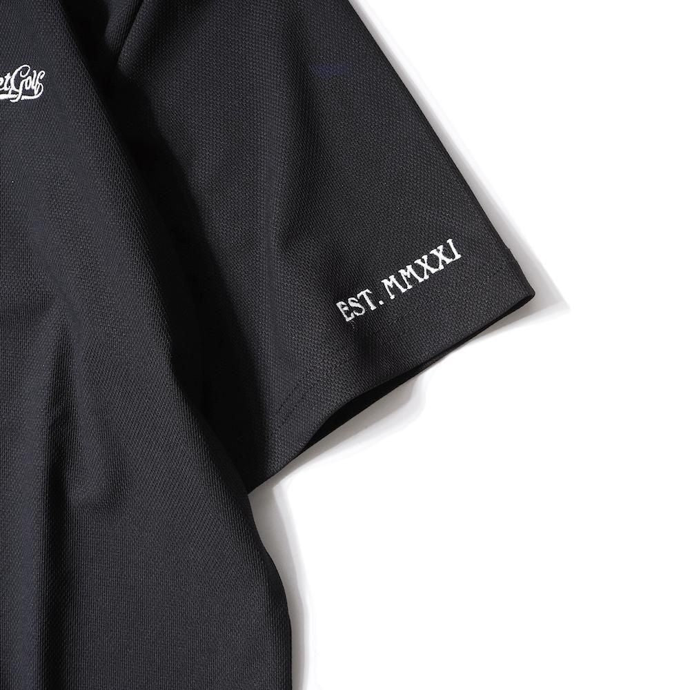 特徴・・・カリフォルニアテイストを感じるフォントで、左胸にブランドネーム刺繍を施した比翼仕立てのゴルフシャツです。
