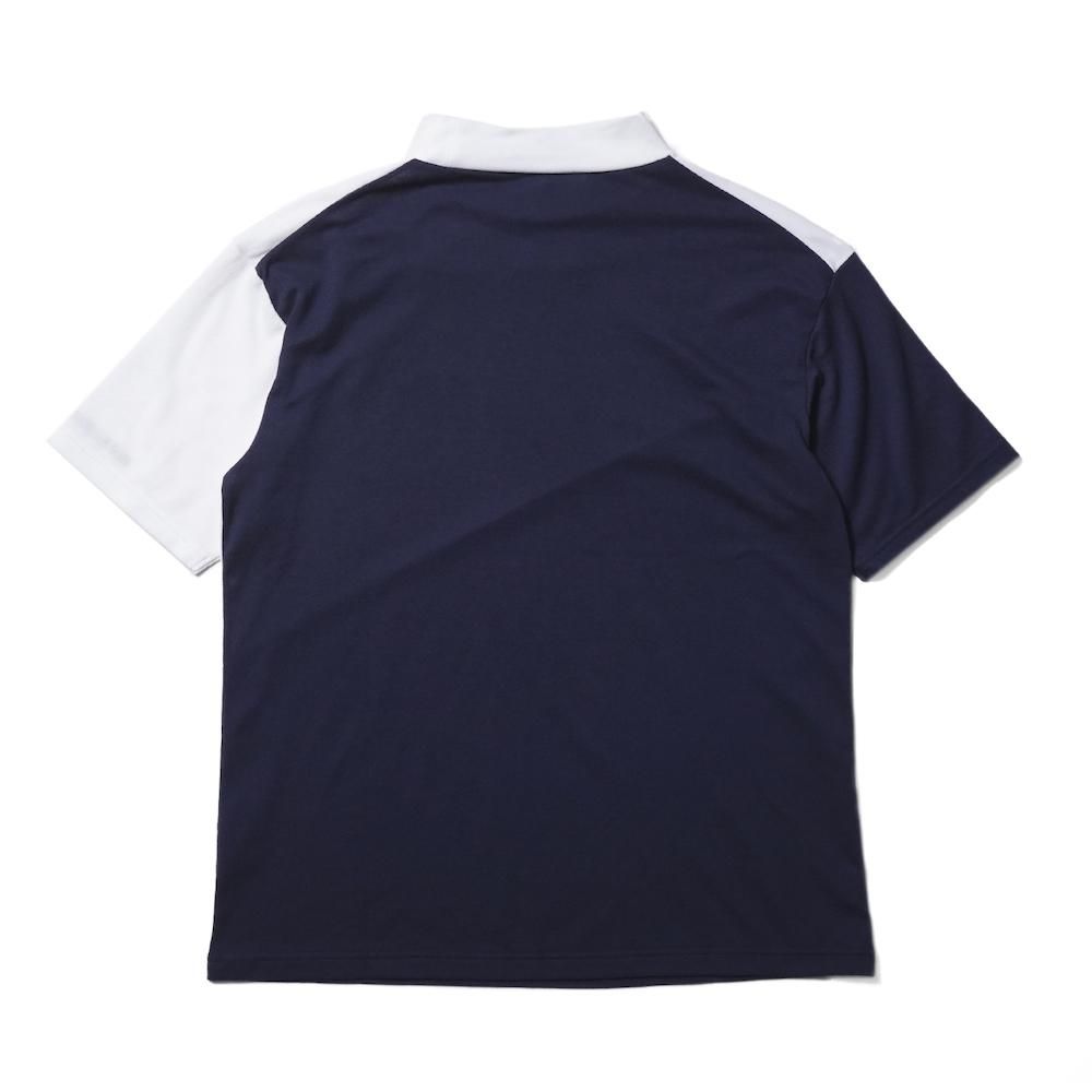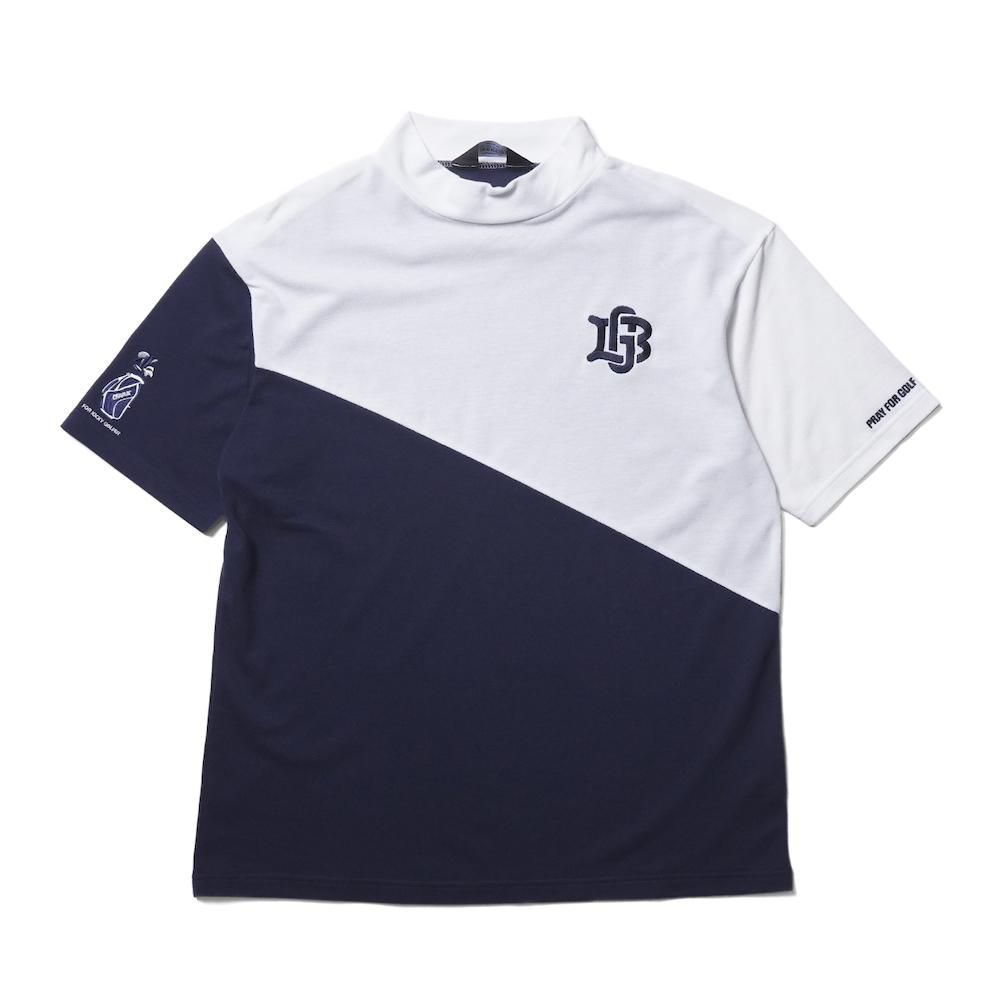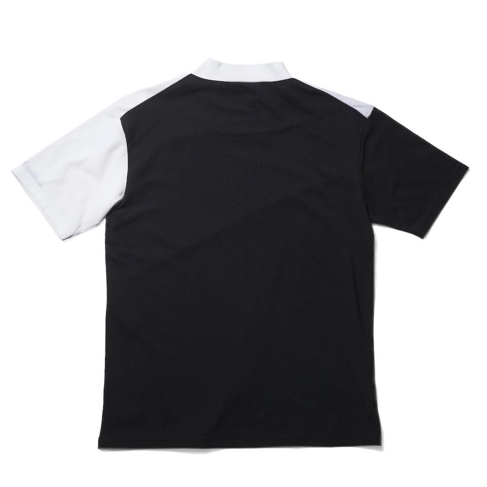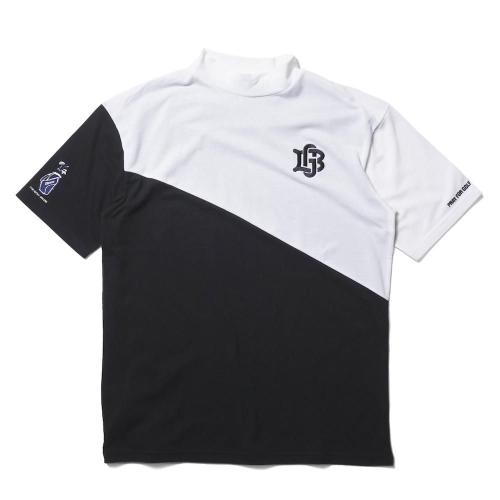 コントラストの効いた大胆な切替が目を引くモックネックシャツです。