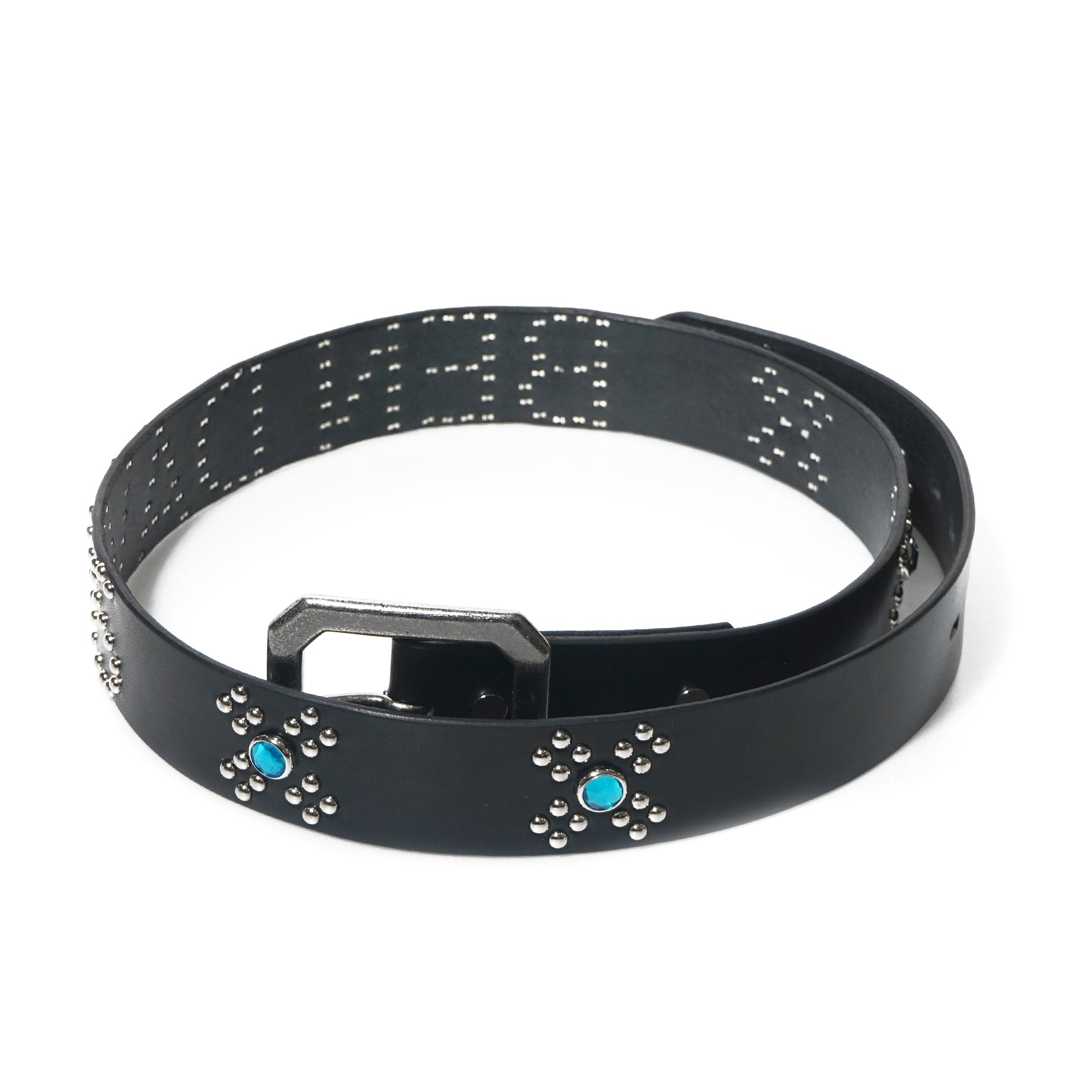 上質な栃木レザーを使用した、存在感のあるスタッズベルト。