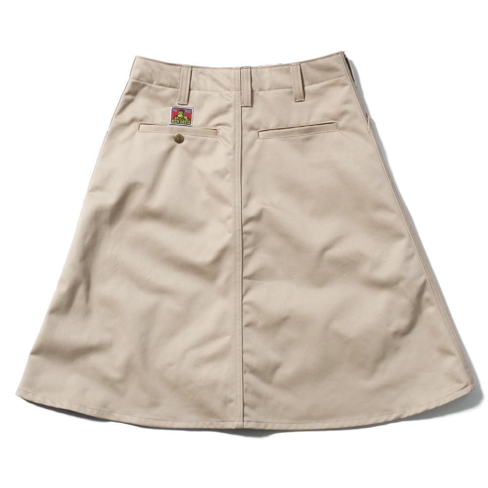 【BEN DAVISマーケットストリート】ひざ丈のフレアスカートです。シンプルながらフロントやバックのポケットなどはBEN DAVIS特有の仕様になっており、ありそうでなかったワークスカートの登場です。