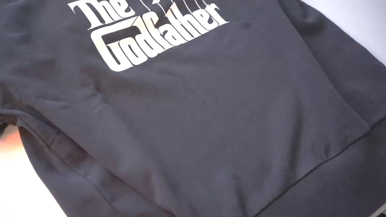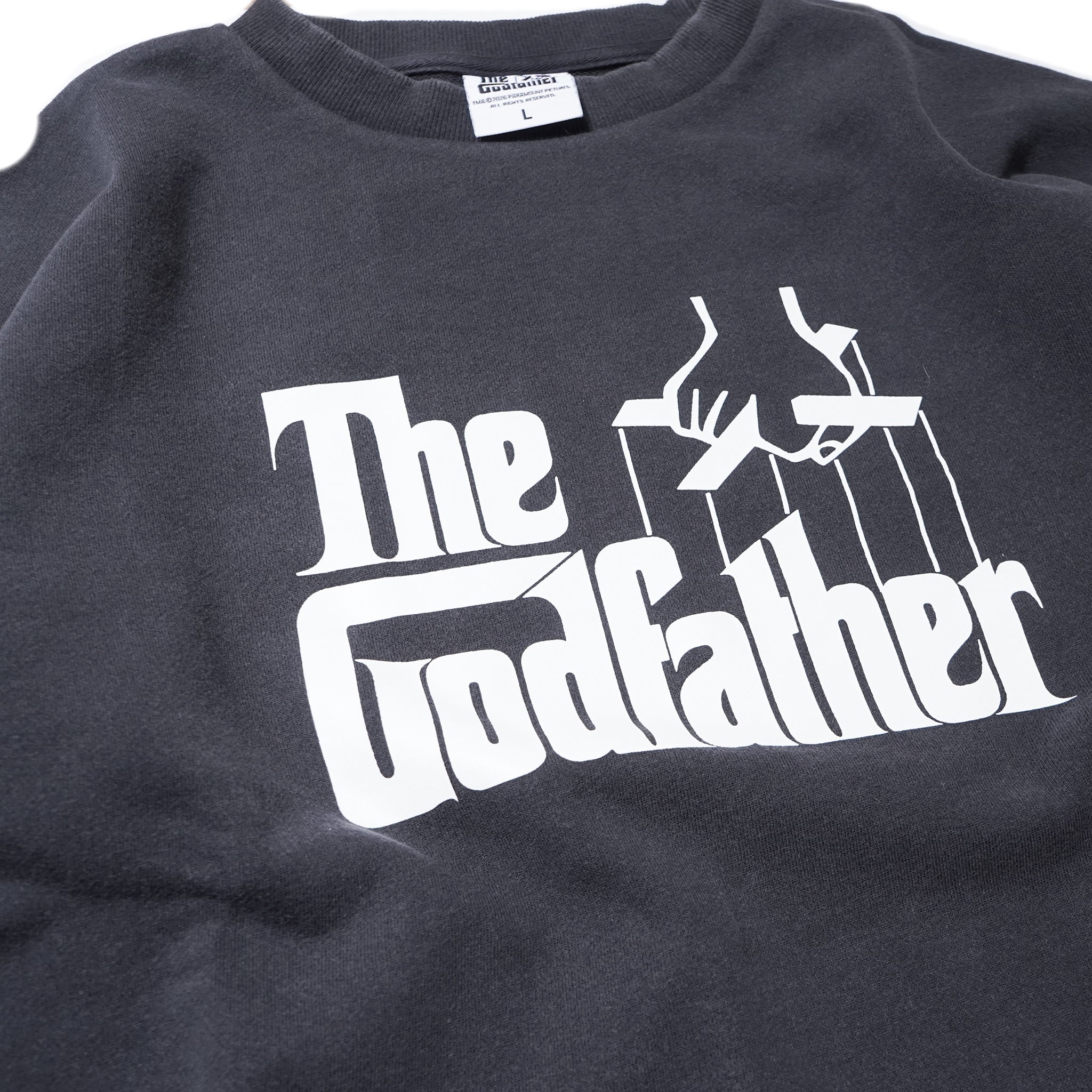映画『The Godfather』の世界観を象徴するロゴを大胆に配したスウェット。